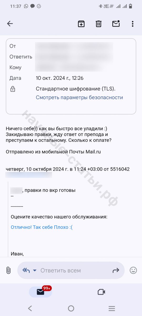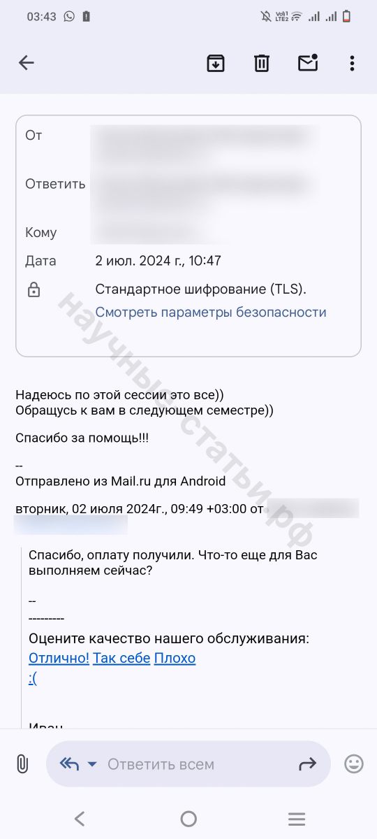 В учебной рутине не успевала написать научную статью, специалисты данного сервиса мне очень сильно помогли и выручили меня. Подготовила ТЗ, обговорили сроки - все готово. Статья принята руководителем. Так что вам пятерка за работу)